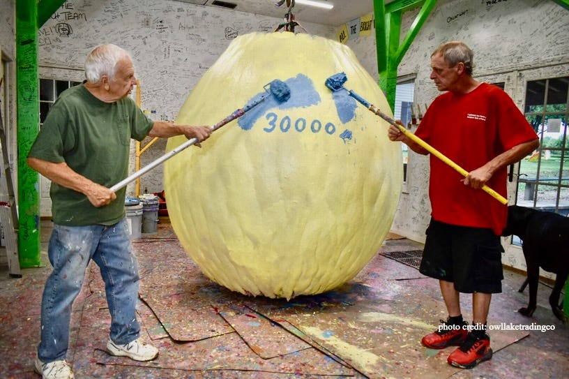 Sure, Florida attracts more than 100 million tourists a year from all over the planet thanks to its many outstanding resorts, hotels and restaurants, its world-class theme parks, its bustling cruise ports, its hundreds of miles of spectacular beaches and its year-round warm weather. But Indiana has... The World’s Largest Ball of Paint. Really. It’s in the town of Alexandria, not far from Muncie, and it weighs more than 11,500 pounds. The official website states: “You’ll be amazed by the sheer size and beauty of the World’s Largest Ball of Paint. It’s truly a must-see attraction for all ages.” If anything that is an understatement, to judge from this official photograph: