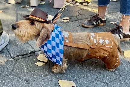 The reason you can’t see the action itself in this photo is that it’s all happening approximately six inches off the ground, in the form of Dachshunds. This event was a Halloweenie Costume Parade, featuring wiener dogs in a variety of outfits, some of them quite dapper.