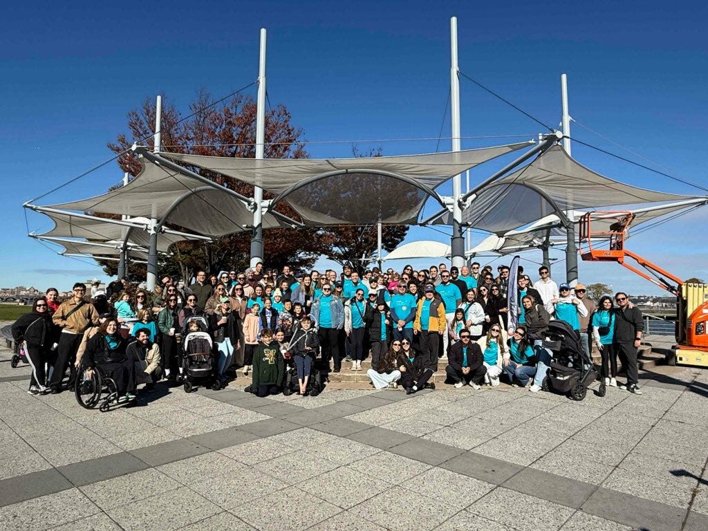 It wasn’t easy, but Sophie managed to finish college with her original class; she’s now in New York, starting a career and living a full life. But she hasn’t forgotten what happened to her, and she’s very aware that other people, and their families, are going through similar ordeals, or worse. So she has become involved with SRNA, an organization that helps people affected by rare neurological diseases. Last Saturday, Sophie and some other volunteers held a charity Walk-Run-N-Roll at Pier 45 in New York, and they raised $28,000 for SNRA. It was a beautiful day, and beautiful event.