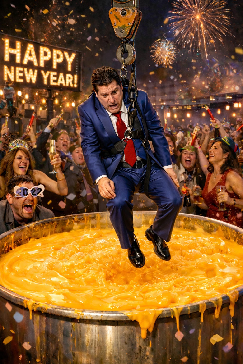 We’re coming up on New Year’s Eve, a time when Americans traditionally express our hopes and dreams for the coming year by getting hammered and watching things descend. The most famous descending thing, of course, is the big ball in Times Square, but there are also “drops” in many other cities, including Miami, where there’s always a festive crowd on hand at midnight on Dec. 31, when we traditionally lower a personal-injury attorney into a vat of Cheez Whiz.