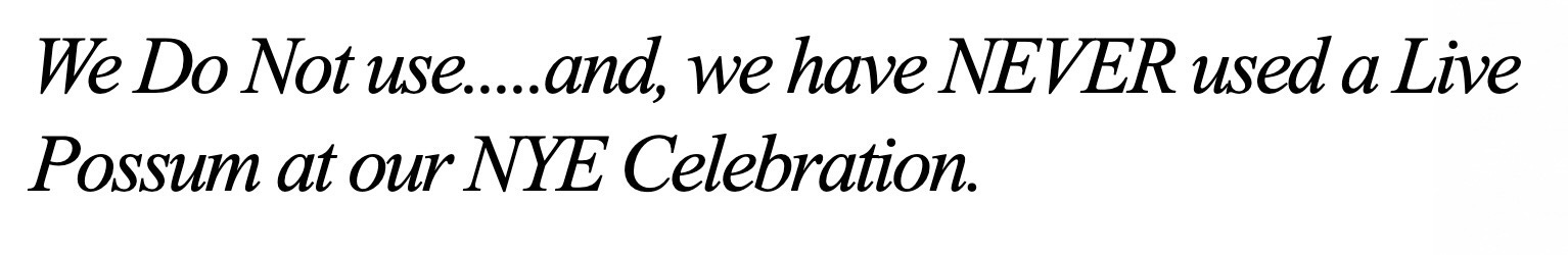 This appears to be a veiled reference to the city of Brasstown, N.C., which used to welcome the new year by lowering a live possum in a Plexiglass cage from the roof of a convenience store. Brasstown officials insisted that they always lowered the possum very gently and later released it unharmed. But over the years there were rumors, totally unfounded, that people were throwing live possums off the roof, which of course would be hilarious wrong. Needless to say this came to the attention of PETA, which looked into the matter and decided it was no big deal.