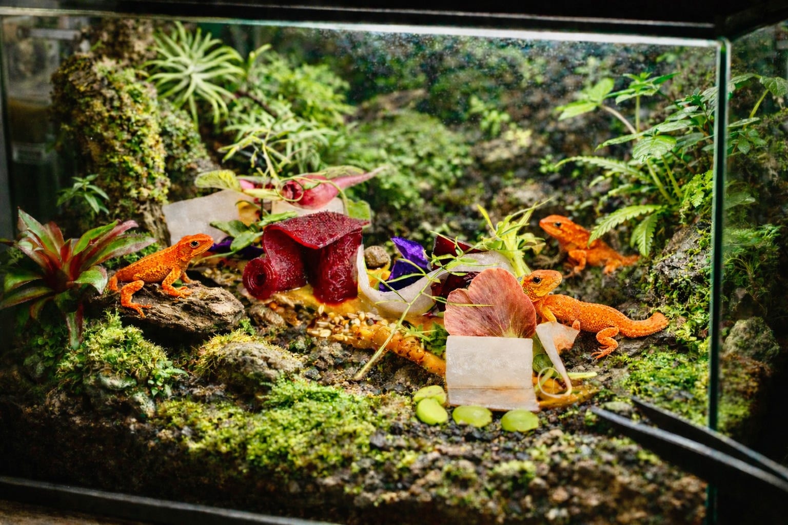 For your information, that is an actual dish created by a famous chef, and according to Oprah.com, it is, quote, “The Most Gorgeous Food You’ll Ever See.” This dish represents a style of trendy modern “haute cuisine” (French, meaning, literally, “hors d’oeuvres”) wherein the chef pays great attention to “plating,” or arranging the various food parts (”partes de food”) on the plate so as to create maximum visual artistry as measured by the total number of dollars the chef can charge you per grape. This dish is so visually artistic that you should not even attempt to eat it. You should just sit there in the restaurant admiring it, then ask the waiter for a doggie bag (”bagge du chien”) so you can take it home and keep it in a terrarium, where it will serve as a tasteful lizard habitat.